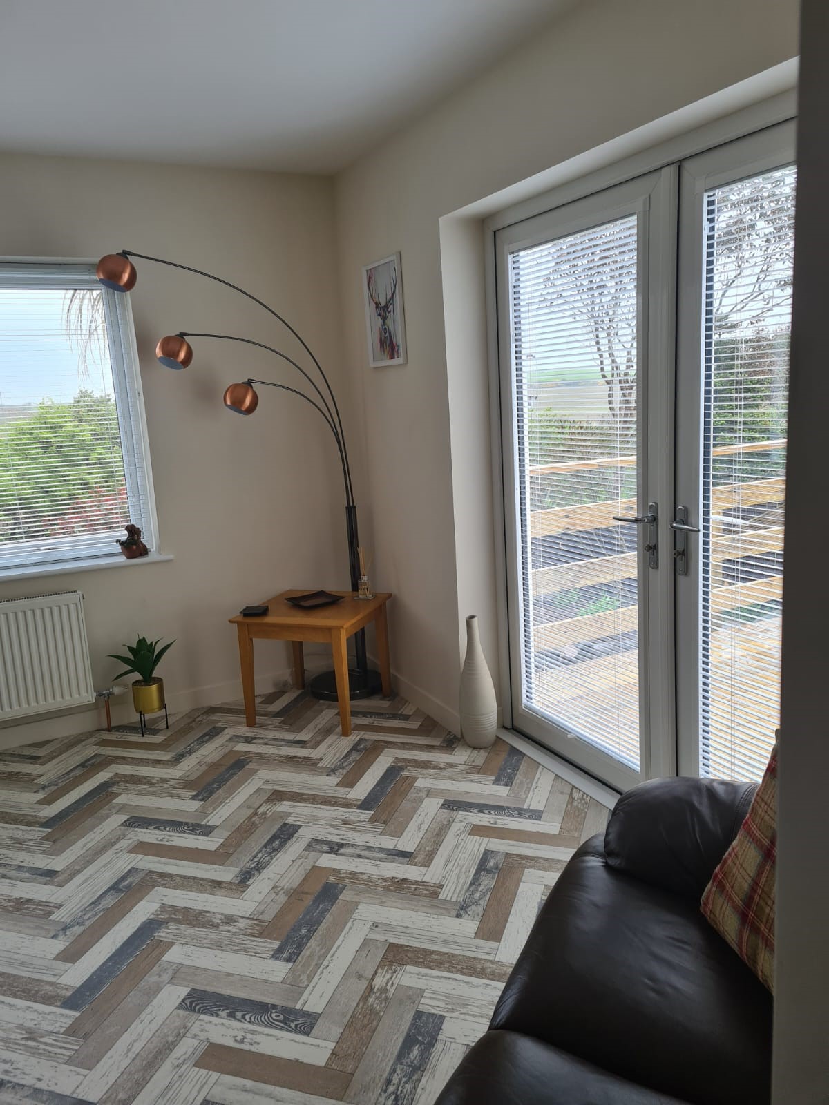 Double doors into additional sitting/dinning room looking out over garden and fields.