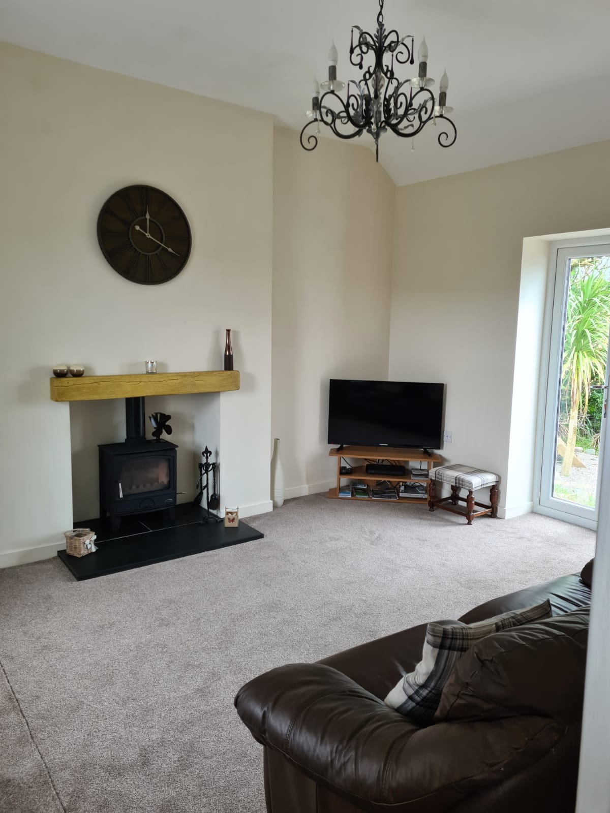 As well as having central heating, you can also snuggle up to the cosy log burner in the good sized living room which has double French doors overlooking the swaying meadows. The kitchen is equipped with everything you need for a self catering holiday, including stove, oven, and a washing machine.